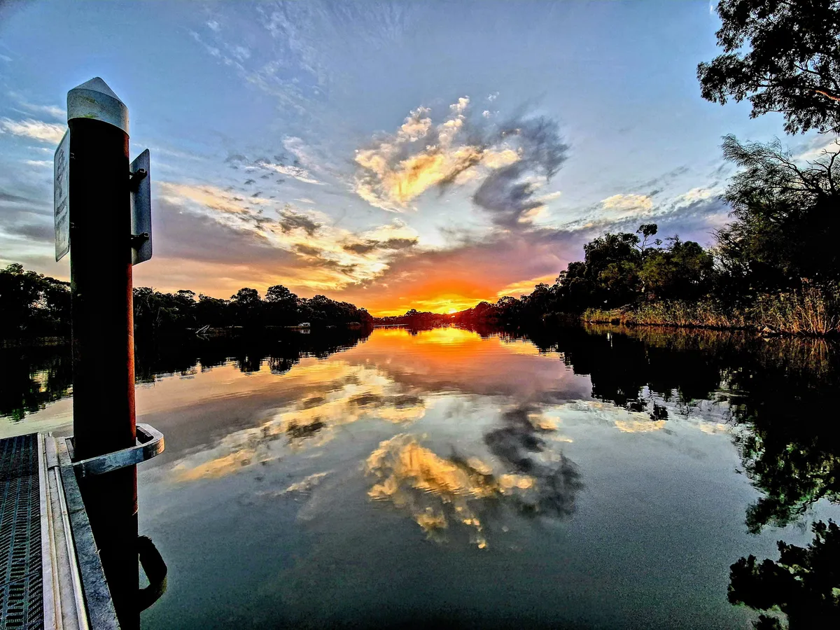 Murray River sunset reflections, Curlwaa boatramp, NSW