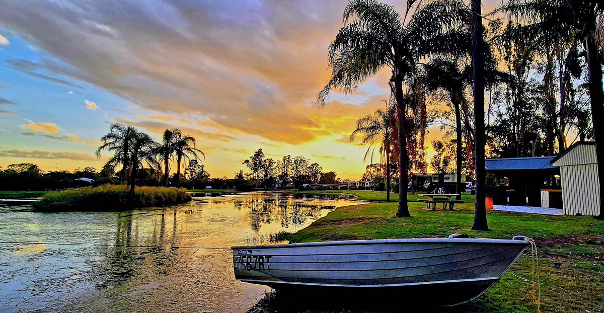 A beautiful sunset by the lake at Millnerran Village Caravan Park