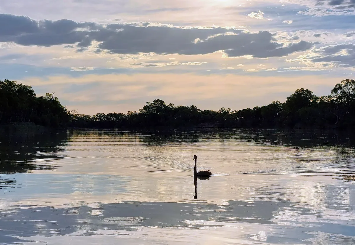 Lone Black Swan, Murray River, Curlwaa, NSW