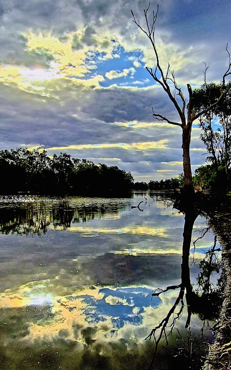 A cloudy Golden Hour on the MacIntyre River, Rainbow Reserve, Kurumbul,