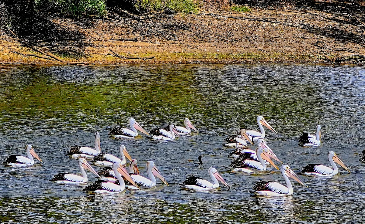 The Pelicans of MacIntyre River, Rainbow Reserve, Kurumbul, Qld