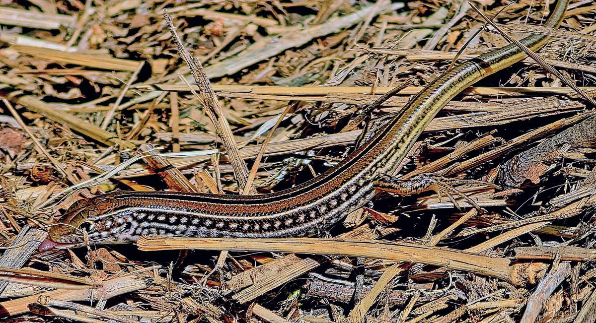 Eastern striped skink, Rainbow Reserve, Kurumbul, Qld