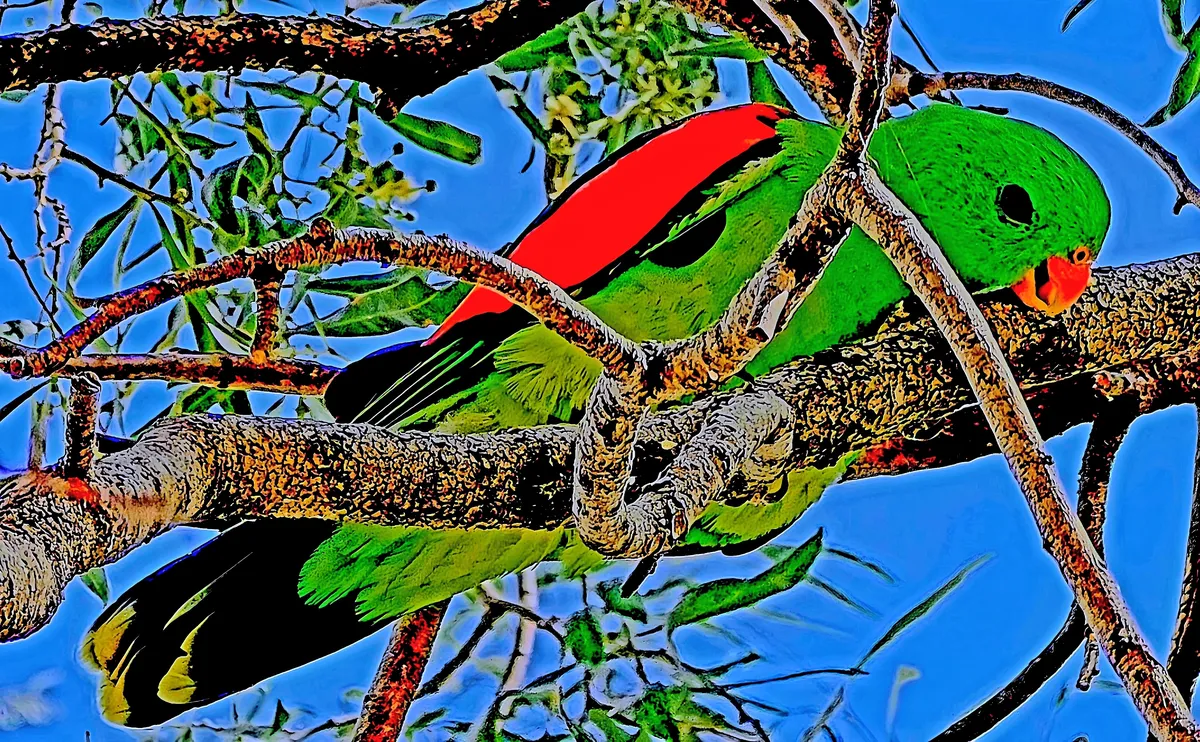 Red winged Parrot, Rainbow Reserve, Kurumbul, Qld